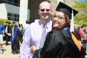 Angela went back to school in her 30s and earned a bachelor of science in English education with a cumulative GPA of 3.97, while raising two teenagers with Brett. She was on the dean’s list every semester and a member of Kappa Delta Pi, the international education honor society. She received a number of scholarships and was admitted to the Ronald E. McNair Scholars Program. On campus, she helped to establish a chapter of Sigma Tau Delta, the international English honor society, and served as its president. She received the Buffalo State President’s Medal, the SUNY Chancellor’s Award, and gave the Commencement Address to the class of 2010.